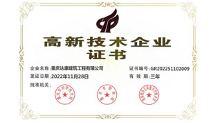 重慶達康建筑工程有限公司,于1993年8月注冊成立,公司注冊資金6128.71萬元,在職員工110余人,其中本科及以上學歷約40%-50%,擁有一、 二級注冊建造師數十人,擁有中級以上職稱數十人,各類從業資格證及上崗證書若干。公司擁有專業的技術施工人員和高效的管理團隊, 能充分滿足并獨立承擔與資質相匹配的工程施工需要;多次榮獲重慶市九龍坡區“守合同重信用單位”稱號,多次獲得“三峽杯”優質結構獎和市級文明工地;合同履約率達到100%。